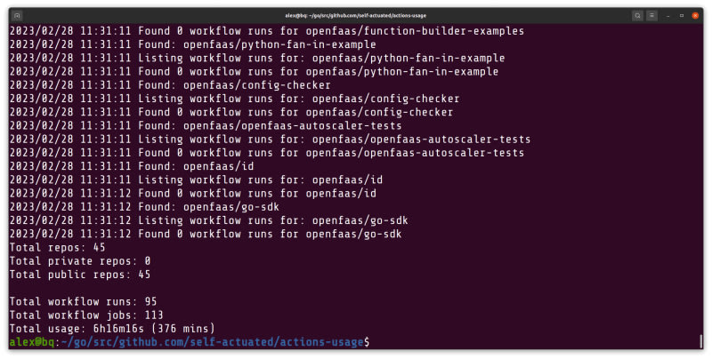 A walkthrough of building a Go CLI tool called actions-usage that calculates total GitHub Actions build minutes across an organization. The tool queries multiple GitHub APIs (repositories, workflow runs, jobs) and aggregates the data. The post covers using Google's go-github library for API integration, handling rate limits,