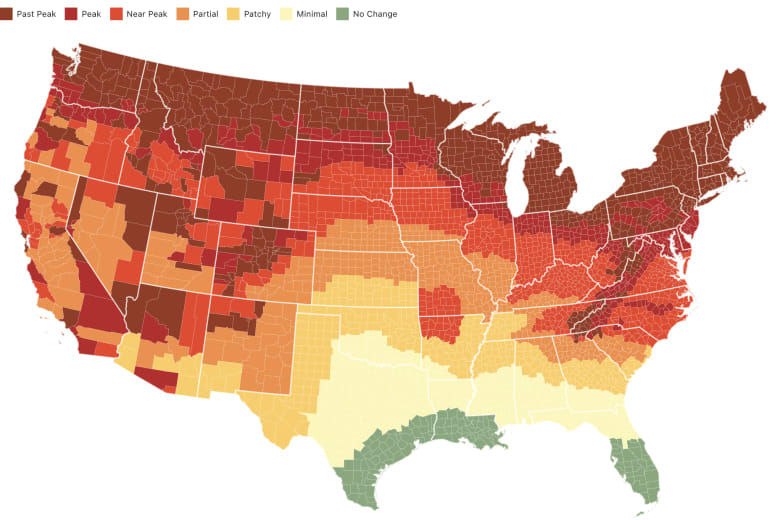Smoky Mountains folks have been posting an interactive map of ConUS foliage predictions for many years. This year, along with the usual R version, I have also made an Observable Notebook version, using data wrangled from the R version. The Observable notebook version makes use of Observable Plot’s super handy geo mark.