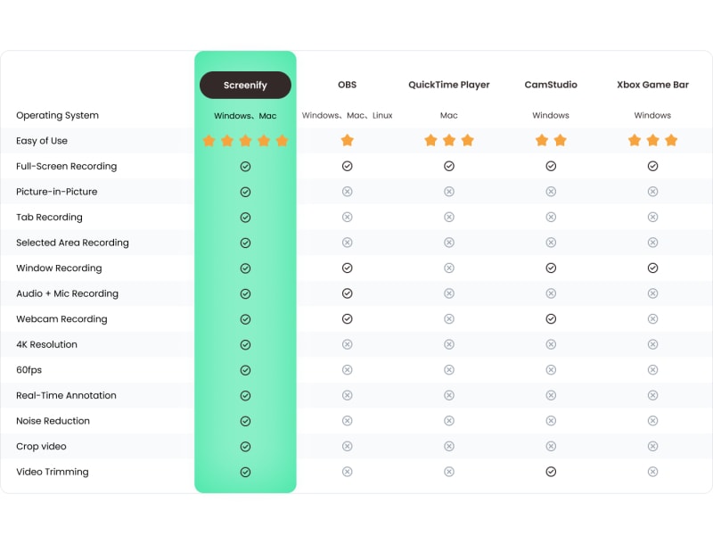 Screenify is a free screen recording tool for Windows and Mac that allows users to capture their screen, webcam, and audio. It offers flexible recording modes, including recording the entire screen or specific applications combined with webcam and audio. Users can record high-quality videos up to 4K resolution at 60fps with