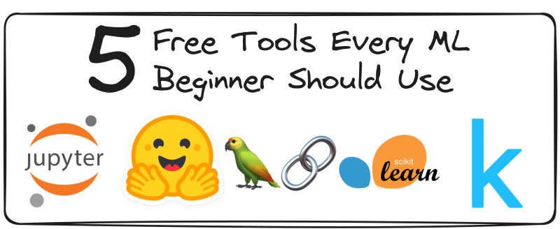 Starting in the machine learning field can be challenging, but several free tools can ease the process for beginners. Essential tools include Jupyter Notebook for creating and sharing documents with code and visuals, Hugging Face for Natural Language Processing (NLP) and large language models, LangChain for developing