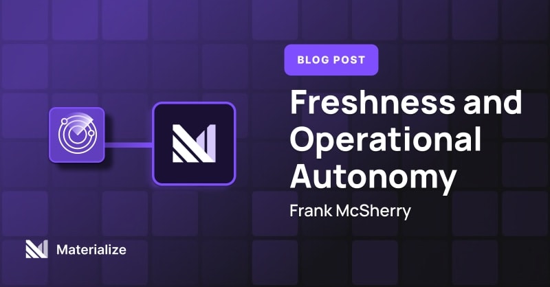 Freshness in MaterializeAutonomy in IngestionAutonomy in ComputationAutonomy in Query ServingFreshness and Operational AutonomySort: