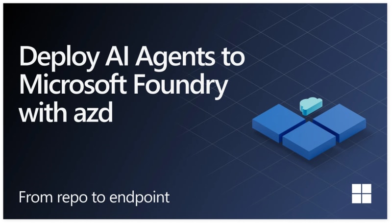 A step-by-step walkthrough for deploying an AI agent to Microsoft Foundry using the Azure Developer CLI (azd). The `azd ai agent` command set handles the full lifecycle: scaffolding infrastructure-as-code (Bicep), provisioning Azure resources, deploying the agent, invoking it remotely or locally, streaming real-time logs, and