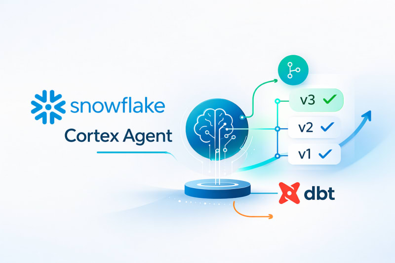 A practical guide to adding version control to Snowflake Cortex Agent workflows using dbt and Git. The approach uses Snowsight UI for prototyping, then extracts agent specs into dbt models with custom materializations for agents, semantic views, and Cortex Search Services. Key benefits include full Git history, reproducible
