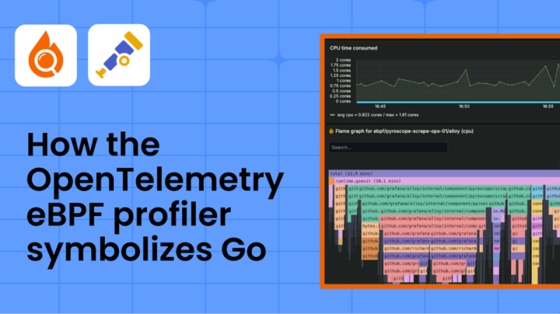 A detailed walkthrough of how the OpenTelemetry eBPF profiler converts raw memory addresses into readable function names for Go programs. The post explains the symbolization pipeline step by step: finding the binary via /proc/maps, loading the .gopclntab section, performing binary search to resolve addresses, and caching