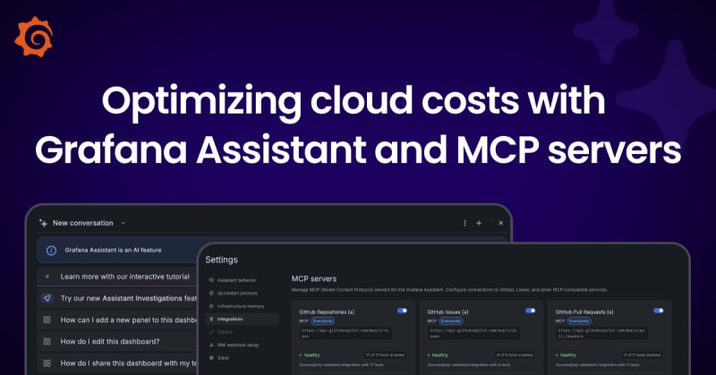 Grafana Assistant, the AI-powered agent in Grafana Cloud, can analyze Kubernetes and cloud infrastructure telemetry to identify resource waste and cost optimization opportunities without requiring PromQL knowledge. By integrating with MCP (Model Context Protocol) servers such as the GitHub MCP server, Assistant can go beyond