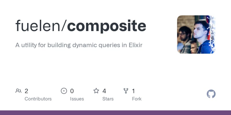 Composite is a versatile utility library for building dynamic queries in Elixir. It simplifies the process of constructing complex queries based on input parameters, making your code more concise and readable.