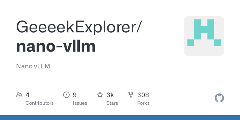 Nano-vLLM is a lightweight implementation of vLLM built from scratch in approximately 1,200 lines of Python code. It offers comparable inference speeds to the original vLLM while providing optimization features like prefix caching, tensor parallelism, and CUDA graph support. Benchmark results show it achieving 1434 tokens/s