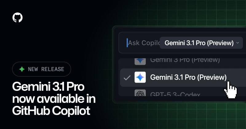 Gemini 3.1 Pro, Google's latest agentic coding model, is now rolling out in public preview for GitHub Copilot. It is available to Copilot Pro, Pro+, Business, and Enterprise users across VS Code (chat, ask, edit, agent modes), Visual Studio (agent, ask modes), github.com, and GitHub Mobile. The model is noted for efficient