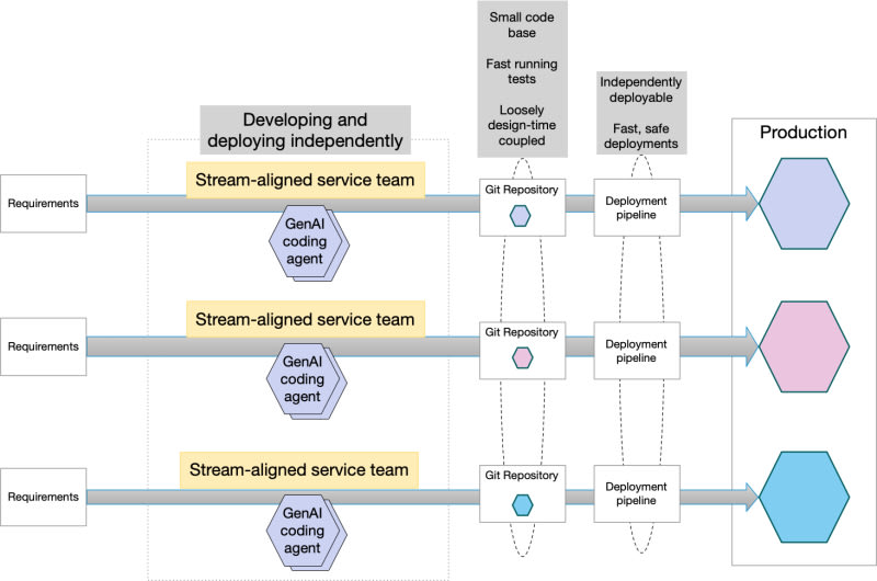 The need for fast flow §Fast flow requires a socio-technical architecture that supports it §The characteristics of a fast flow architecture §Why fast flow architecture is essential for GenAI-based software delivery §Why the microservice architecture matters for GenAI-based software delivery §How GenAI-based coding agents scale software development §Fast flow architecture, microservices, and the GenAI coding agent experience §Are you ready for GenAI-based software delivery? §Need help with modernizing your architecture? §Sort: