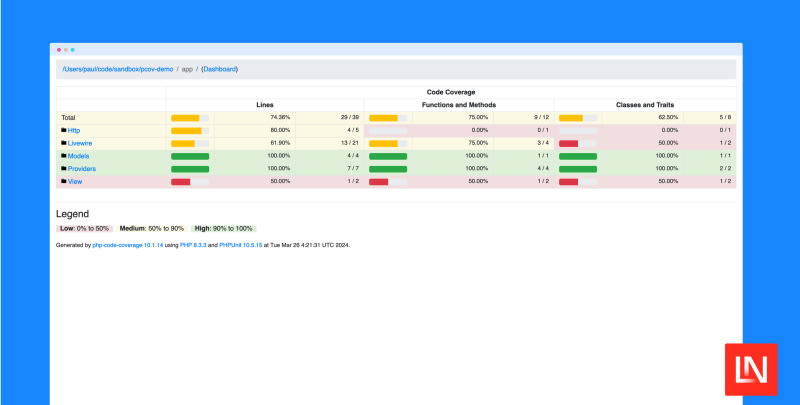 Learn how to generate code coverage in Laravel with PCOV, including generating HTML reports and configuring coverage in phpunit.xml. Discover how coverage is determined and how to include nonstandard code paths in coverage reports.