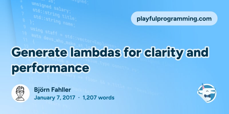 Using higher-order functions and lambdas in C++14 can improve both code clarity and performance compared to hand-written loops. The post demonstrates building a generic filtering algorithm, composable lambda-returning functions (like `earns_at_least` and `has_title`), and a `pred_and` combinator. Benchmark results using `perf`