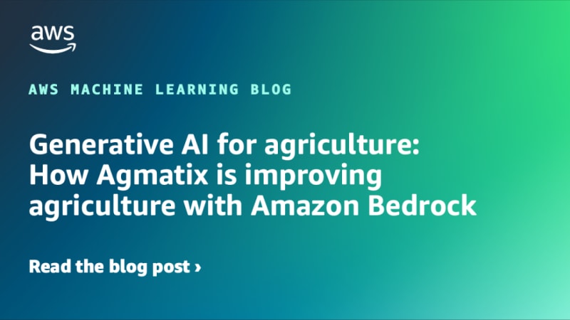 Agmatix, an agriculture technology company, uses Amazon Bedrock and AWS services to enhance R&D processes, improve crop yields, and promote sustainable agriculture through generative AI. By facilitating data standardization and automating field trial management, Agmatix helps agronomists and researchers perform complex data
