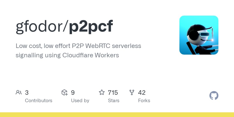 P2PCF is a low cost, low effort solution for serverless WebRTC signalling using Cloudflare Workers. It allows users to deploy WebRTC-enabled applications without managing a signalling server.