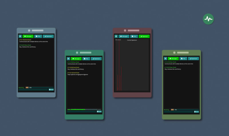 The ggwave library enables communication of small data packets between air-gapped devices using sound. It uses a simple FSK-based transmission protocol and error correction codes for robust demodulation. The library is versatile, supporting numerous uses such as serverless broadcasting, IoT applications, audio QR codes, and device pairing. It works with various audio backends and includes applications for testing and integrating the library in different environments.