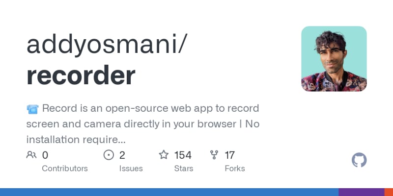Record is an open-source web app that lets you record your screen and camera directly in your browser without any downloads or installations. It supports screen-only, screen-and-camera, or camera-only modes, and features a picture-in-picture view, customizable camera shapes, a built-in teleprompter, and MP4 conversion. It works
