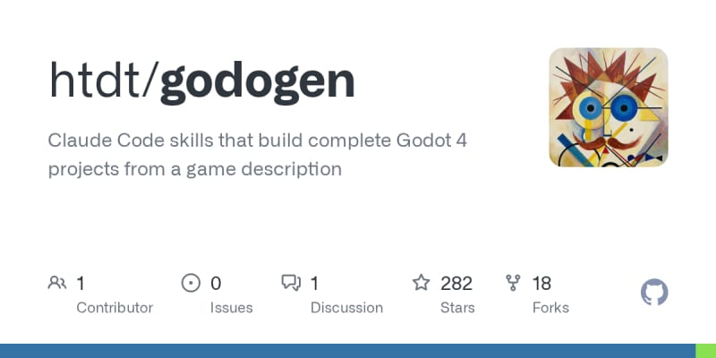 Godogen is an open-source tool that uses Claude Code skills to automatically generate complete Godot 4 game projects from a text description. An AI pipeline handles architecture planning, 2D/3D asset generation (via Gemini and Tripo3D), GDScript code writing, and visual QA by capturing screenshots from the running engine. Two