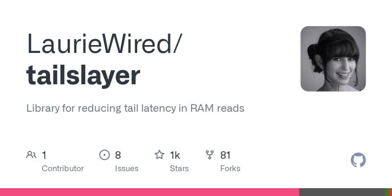 Tailslayer is a C++ library that reduces tail latency in RAM reads caused by DRAM refresh stalls. It works by replicating data across multiple independent DRAM channels with uncorrelated refresh schedules, using undocumented channel scrambling offsets compatible with AMD, Intel, and Graviton processors. When a read request arrives, it issues hedged reads across all replicas and uses whichever responds first. The library exposes a template-based HedgedReader API where users provide a signal function (to determine when to read) and a work function (to process the result). It handles address calculation and core pinning internally, acting as a hedged vector with logical indices.