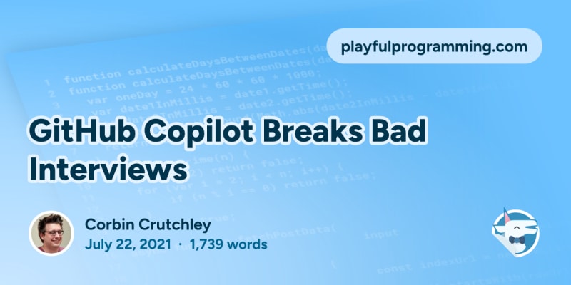 What is GitHub Copilot? Copy link Link copied!How does Copilot Threaten Tech Interviews? Copy link Link copied!Algorithms Are Breaking Your Interviews Copy link Link copied!How to Fix Your Interviews Copy link Link copied!Conclusion Copy link Link copied!Sort: