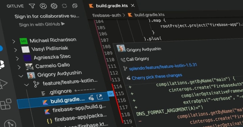 GitLive now works with any Git repository in VS Code. The offline mode uses the data from your local Git repository only. The changes from the branches shown in the GitLive tab also appear for your current file in the gutter of your editor. It even shows you when the changes conflict with your own - a kind of early warning system for merge conflicts.