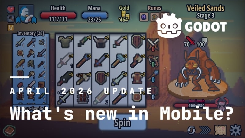The Godot Foundation's mobile team shares progress on improving Godot's mobile capabilities across Android and iOS. Key updates include: new and maintained ecosystem plugins for Google Play Billing, Google Play Games Services, and Apple StoreKit 2 to support in-app purchases and store features; GPU driver compatibility fixes