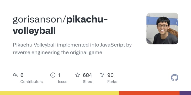 Pikachu Volleyball, an old Windows game, has been implemented into JavaScript through reverse engineering. The game can be played on a website, and the repository provides instructions on how to clone, install dependencies, bundle the code, and run a local web server. The physics engine and AI of the original game have been