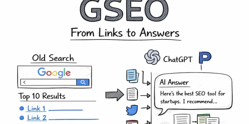 GSEO (Generative Search Engine Optimization) represents a shift from traditional link-based SEO to optimizing content for AI-powered search tools like ChatGPT and Perplexity. Instead of competing for clicks, content must be clear, easily summarizable, and authoritative so AI systems can confidently use it in direct answers.