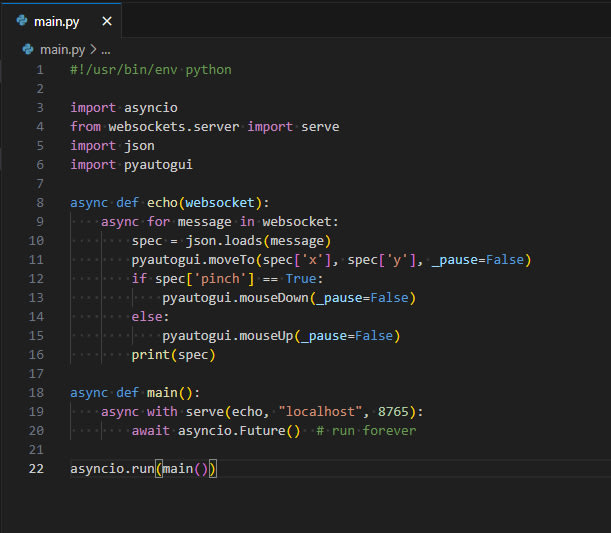 The post describes a project that implements hand tracking to simulate mouse input using finger pinching, inspired by Apple Vision Pro. Initially, the author faced performance issues with the Python version of MediaPipe but found success using the web version. They managed real-time communication between the web frontend and