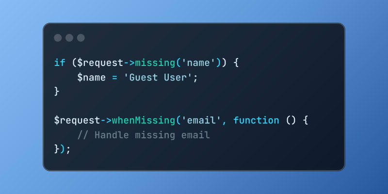 Laravel offers methods such as missing() and whenMissing() to effectively manage absent request data. These methods help in handling optional fields and setting default values for them. The post includes sample code demonstrating the use of these methods in a settings update system to enhance code expressiveness and maintainability.