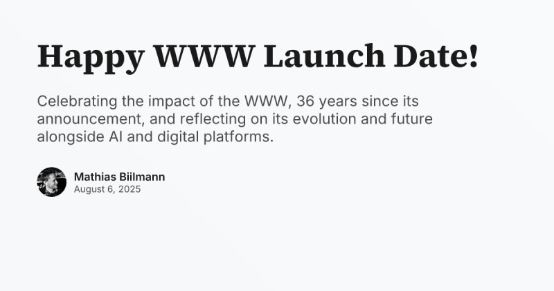 Celebrating the 36th anniversary of Tim Berners-Lee's World Wide Web announcement, this reflection explores how the web transformed global communication and compares it to today's AI revolution. The author argues that despite concerns about AI potentially disrupting the web through agents and LLMs, the web platform remains more