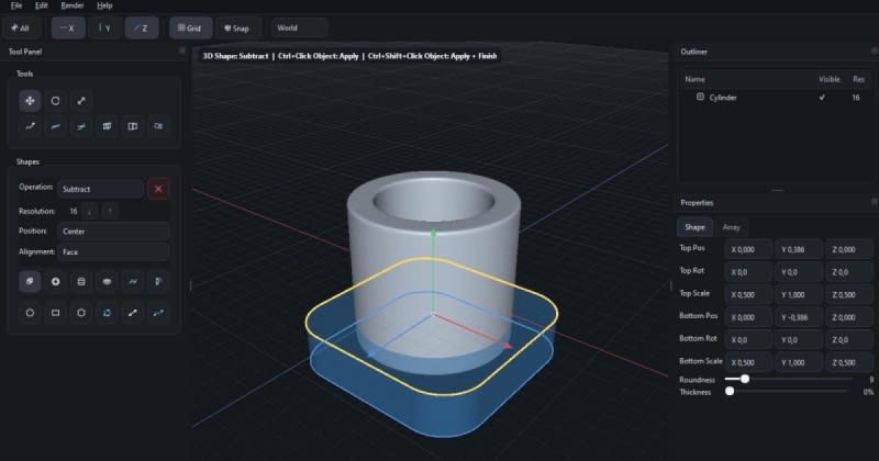 HardCuts is a new alpha-stage 3D modeling application by Jayanam built on a voxel and SDF-based geometry engine. It targets hard-surface modelers, concept artists, and game artists working on sci-fi, industrial, or mechanical assets. Key features include real-time Boolean operations (add, subtract, slice, intersect), parametric