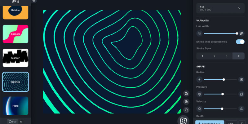 Heazy lets you generate beautiful, unique and and funky vector visuals. Export your creations as SVG, PNG or React Components in JavaScript or TypeScript. Save your coolest templates to your profile. Reuse and randomise designs as often as you want. Heazy is free to use.
