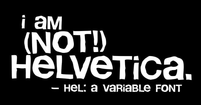 Hel is a deliberately distorted variable font with three customizable axes: Slant for faux italics, Warp for character distortion effects, and Shrink for baseline disruption. The font includes 80 glyphs, 15 contextual alternates, and is designed for creating gritty, DIY aesthetic web pages while maintaining performance through
