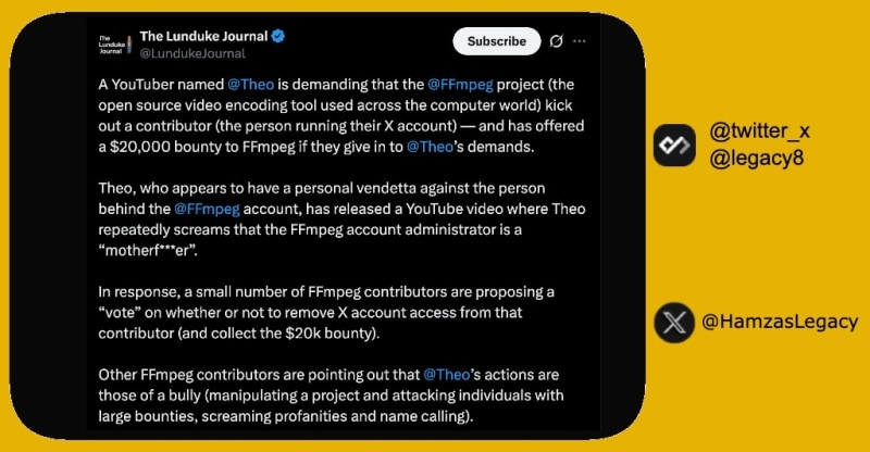 Here's why Theo offered a $20,000 bounty to FFmpeg