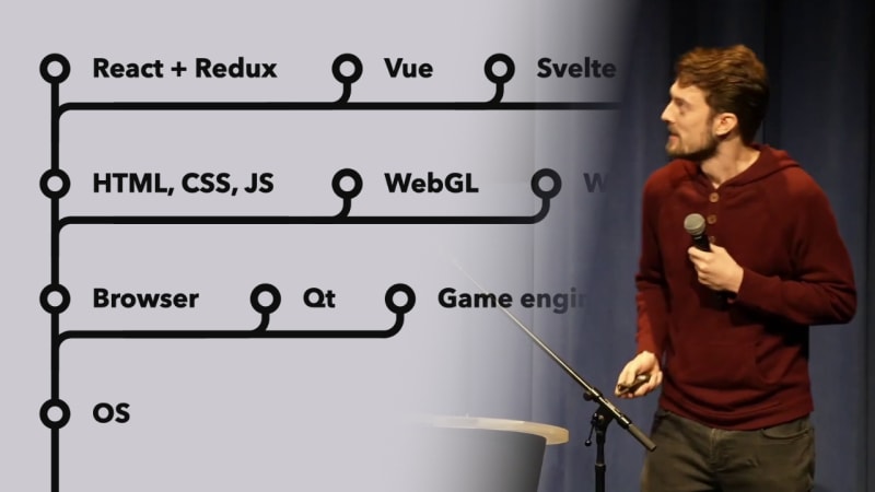 Modern software suffers from poor performance despite powerful hardware because developers build on top of bloated, high-level frameworks without understanding lower-level alternatives. The tech stack fundamentally shapes software quality—React+Redux apps like New Reddit are inherently slow because they trigger unnecessary