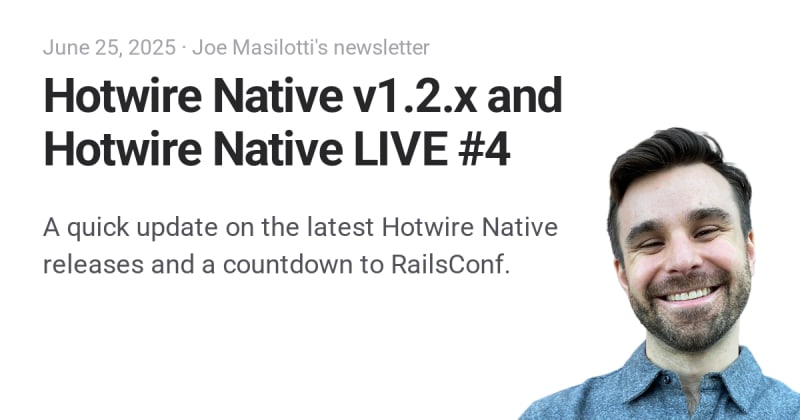 Hotwire Native v1.2.x releasedTomorrow: Hotwire Native LIVE - Route Decision HandlersSort: