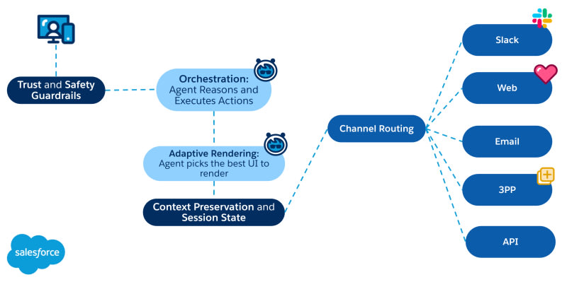 Salesforce engineer Utkarsh Jain explains how the Agentforce Connections feature converts LLM text responses into structured UI components like seat maps and carousels. The system had to solve when to render rich UI vs. plain text, how to preserve conversational context after UI interactions, and how to support diverse