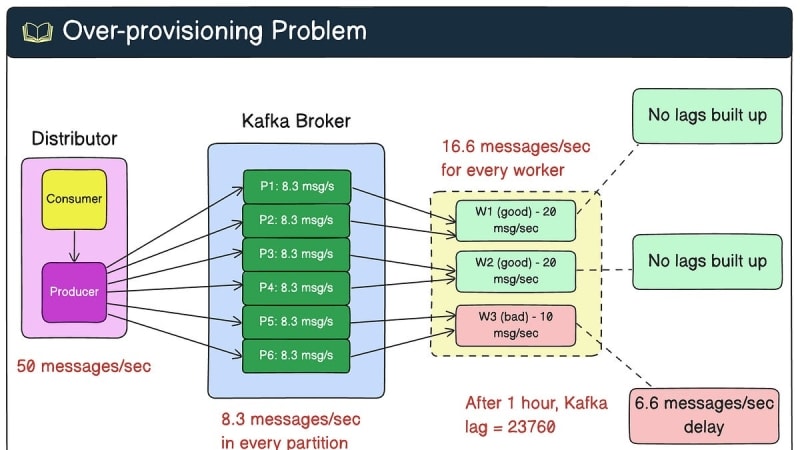 Agoda processes hundreds of terabytes of Kafka data daily for real-time price updates from suppliers. Standard round-robin partitioning caused over-provisioning due to heterogeneous hardware and uneven message workloads. Static solutions like identical pod deployments and weighted load balancing were rejected as impractical.