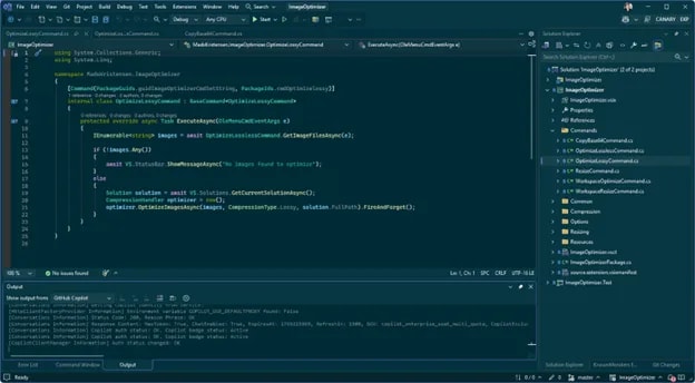 A developer shares their experience using GitHub Copilot and AI agents in Visual Studio to complete three long-postponed projects during a holiday weekend: converting a book into a static website, building a TOON language parser and Visual Studio extension, and creating new color themes. The AI tools provided 5-10x speed