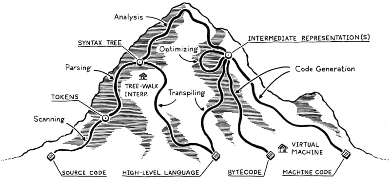 Bob Nystrom wrote an amazing book called Crafting Interpreters, where he goes through how language implementations work. We’ll be giving a summary of one of the chapters with some commentary from yours truly. The difference between programming languages and programming language implementations. Front end, middle end and back
