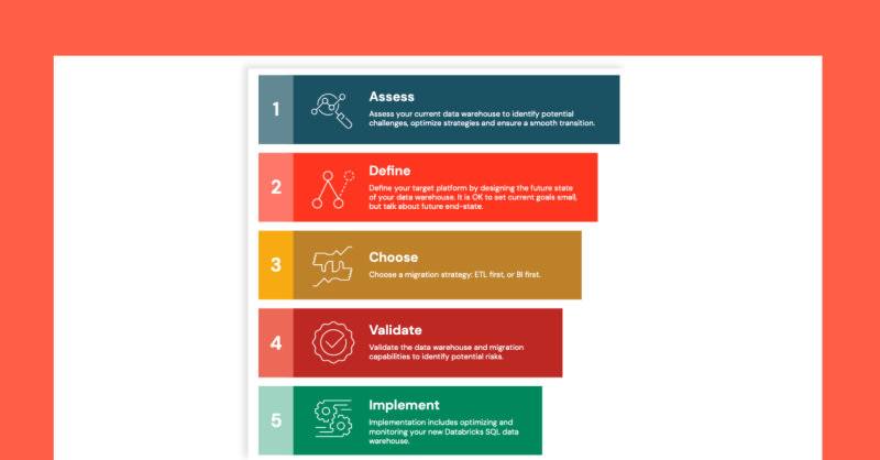 Modernize your data warehouse by migrating to DatabricksA proven strategy for low-risk migrationStep 1: AssessStep 2: DefineStep 3: ChooseSort:
