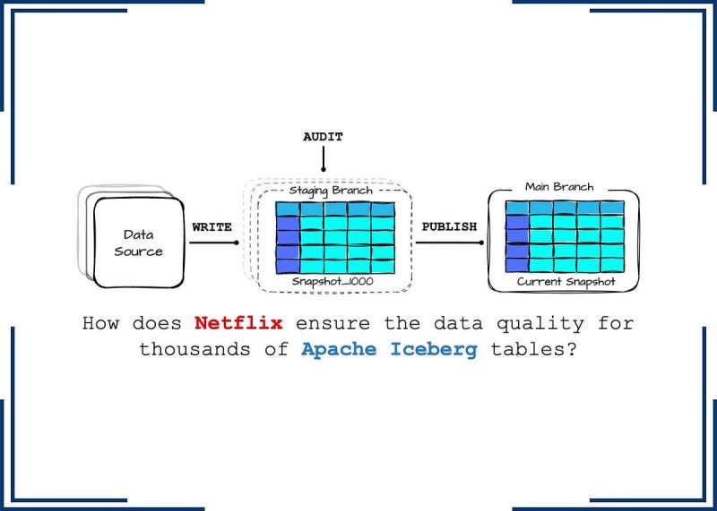 Netflix employs the Write-Audit-Publish (WAP) pattern using Apache Iceberg to maintain high data quality across thousands of tables. The WAP pattern involves writing data to a hidden snapshot, auditing it, and publishing it only if it passes quality checks. This approach is analogous to CI/CD workflows, ensuring validated data