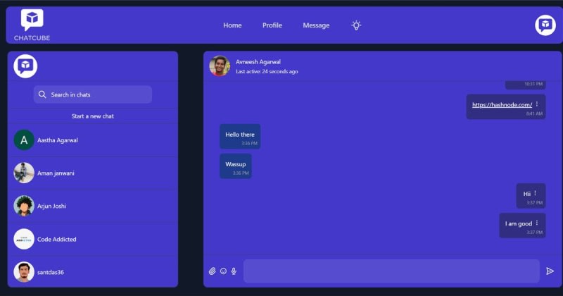 ChatCube is an open-source 1:1 chat app that I built for the Clerk x Hashnode hackathon. You can sign up using your email, Google, GitHub, or Facebook. To send a message just click on the name of the person you want to send the message. Emoji mart is being used for all the emojis.