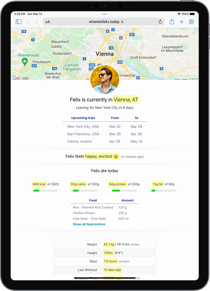 Every single day for the last 2.5 years I tracked over 100 different data types - ranging from fitness & nutrition to social life, computer usage and weather. Since the start of this project, I collected a total of more than 380,000 data points. 100% fully open source, MIT licensed and self-hosted.