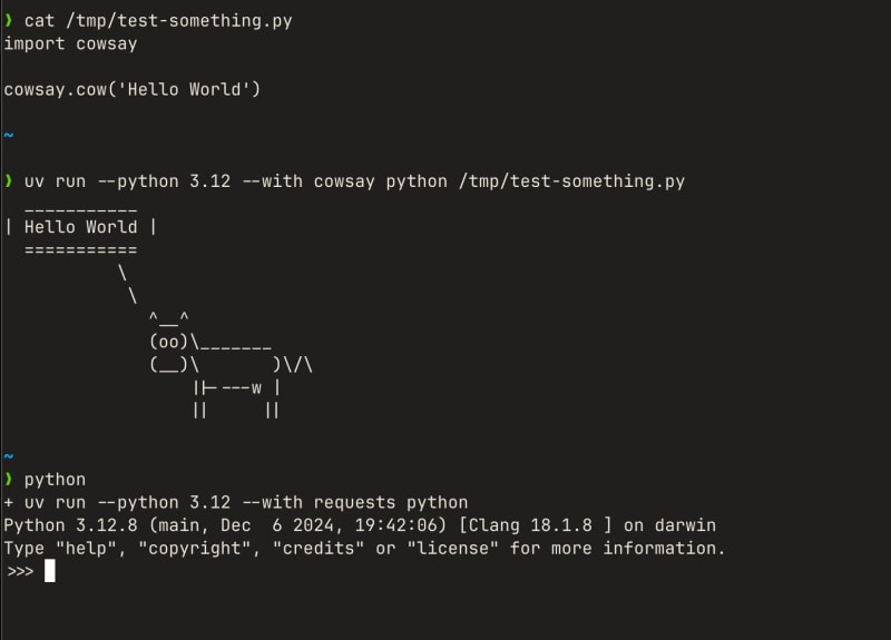The author shares their experience of managing Python projects in 2025. They use uv for Python version and dependency management, replacing tools like pip, pyenv, Homebrew, and Poetry. The author explains how they handle Python executables for standalone scripts using a custom bash script that integrates uv to quickly run scripts with specific dependencies.