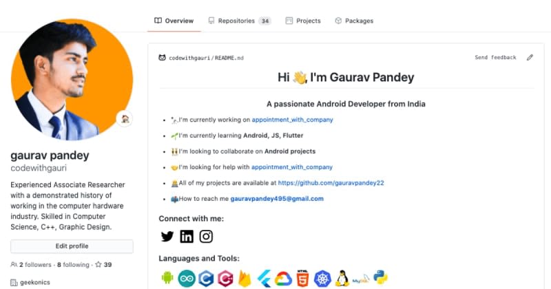 GitHub Readme Stats is a tool that allows you to generate real-time GitHub stats for your contributions and repositories. You can also select your respective skillsets to feature them in your profile. For demo you can check my Github profile here. For more information on how to use this tool click here.