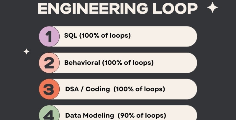 The SQL Interview (100% of the time!)Data Structures and Algorithms Interview (100% of the time!)The Behavioral Interview (100% of the time)The Data Modeling Interview (90% of the time!)The Data Architecture Interview (75% of the time!)Conclusion1 Comment