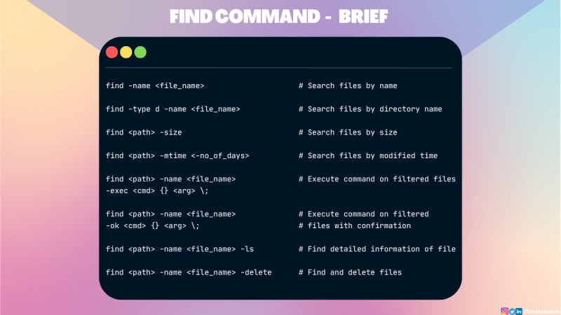 Learn how to search files effectively in the Linux terminal using the 'find' command. Discover how to search files by name, find directories, search files by size, search files based on time modified, execute commands on filtered files, find files with detailed information, and find and remove files.