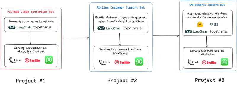 The Best Way to Learn is to BUILD!Here’s What We’ll Cover:What Should Be Your First Project?Project #1: Summarise YouTube VideosProject #2 — Build a Bot that Can Handle Different Types of User QueriesProject #3 — RAG-Powered Support BotConclusion9 Comments