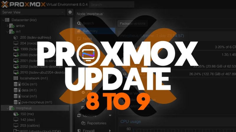 A comprehensive walkthrough for upgrading Proxmox VE from version 8 to 9, which runs on Debian 13 Trixie. The process involves running pre-upgrade checks, updating the current system, switching repository definitions from Bookworm to Trixie, and performing a dist-upgrade. Key steps include backing up configurations, migrating