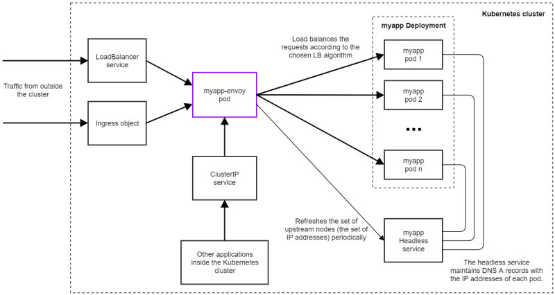 This post discusses the use of Envoy as a load balancer in Kubernetes. It explores the advantages of Envoy, such as its high performance, low resource footprint, and support for dynamic configuration. The post also provides a step-by-step guide for deploying Envoy as a load balancer in front of a service running in Kubernetes.